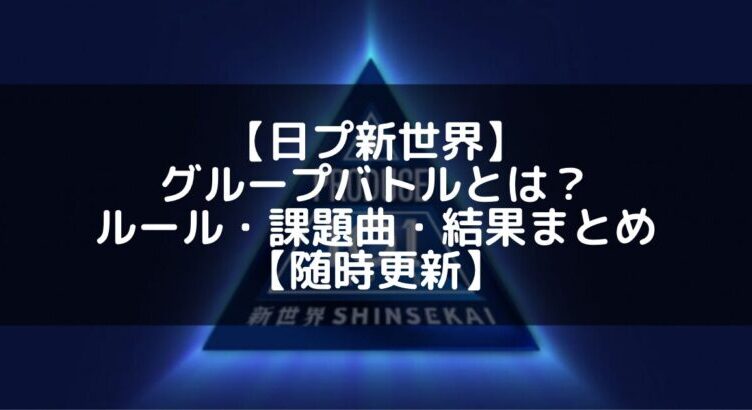 PRODUCE 101 JAPAN 新世界 【日プ新世界】グループバトルとは?ルール・課題曲・結果まとめ【随時更新】 日プ新世界のグループバトルを徹底解説!ルール・チーム分け・課題曲一覧・ベネフィットの仕組みまで、初心者でもわかるようにまとめました。Ado「唱」や米津玄師など豪華選曲にも注目。結果は随時更新中です。 2026.04.07 PRODUCE 101 JAPAN 新世界オーディション番組